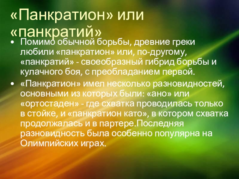 Слайд 7«Панкратион» или «панкратий»