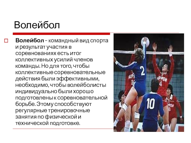 Волейбол – командный вид спорта и результат участия в соревнованиях есть