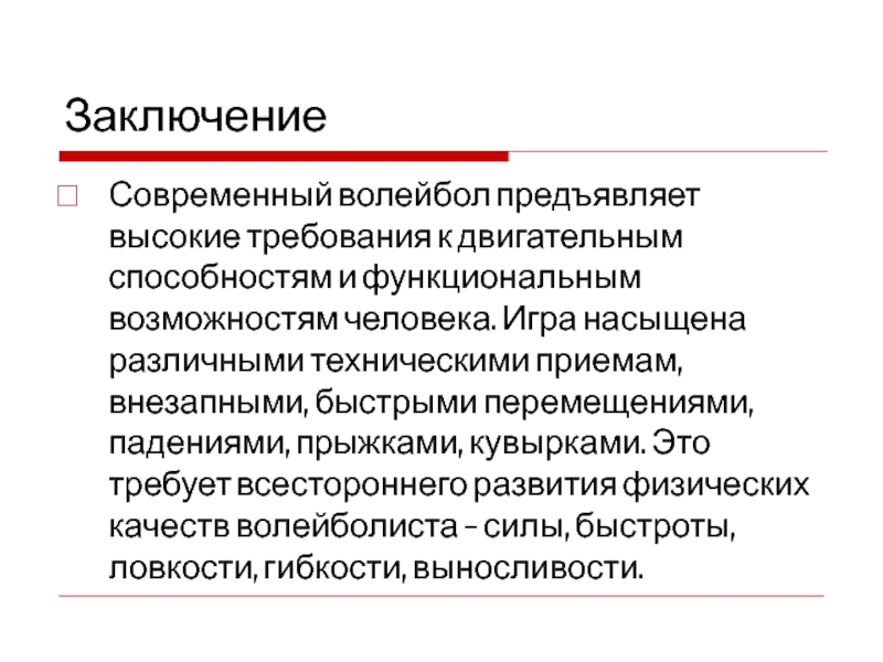 Современный волейбол предъявляет высокие требования к двигательным способностям и функциональным возможностям