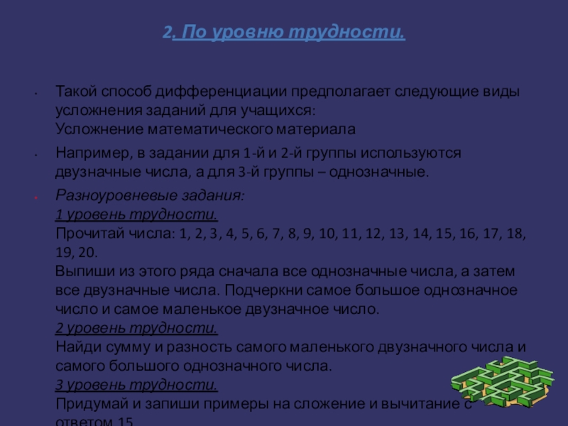 Такой способ дифференциации предполагает, что учащиеся 1-й