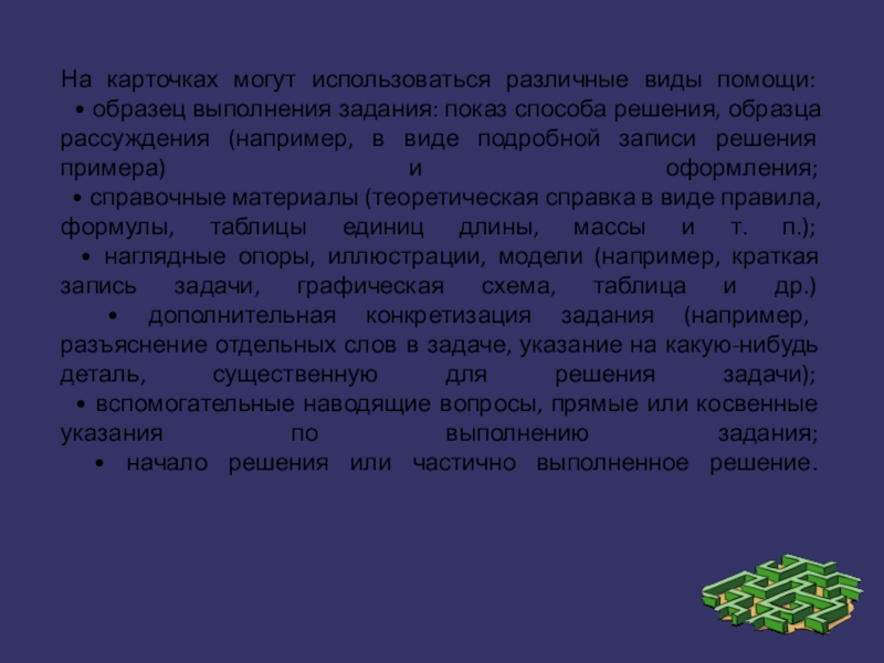 Слайд 21На карточках могут использоваться различные виды помощи: