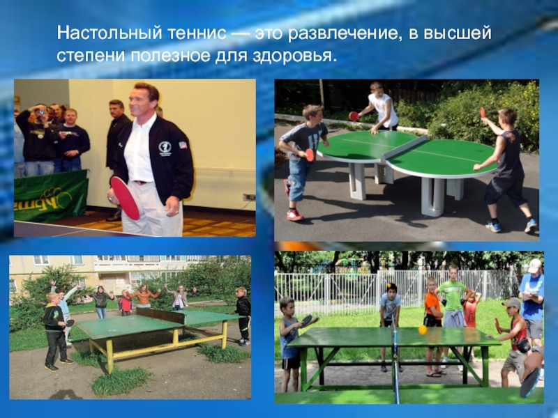 Настольный теннис — это развлечение, в высшей степени полезное для здоровья.