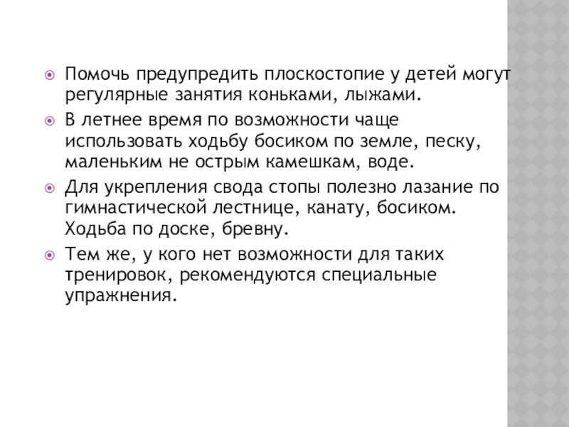 Слайд 9Помочь предупредить плоскостопие у детей могут регулярные занятия коньками, лыжами.