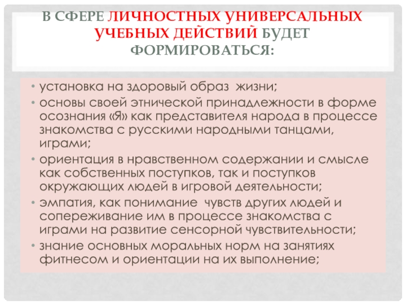 Слайд 6В сфере личностных универсальных учебных действий будет формироваться: