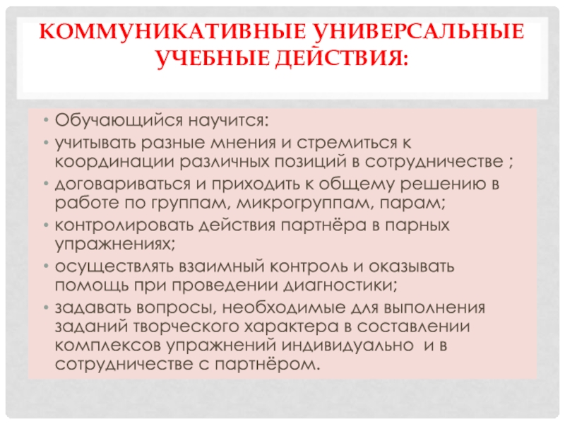 Слайд 8Коммуникативные универсальные учебные действия: