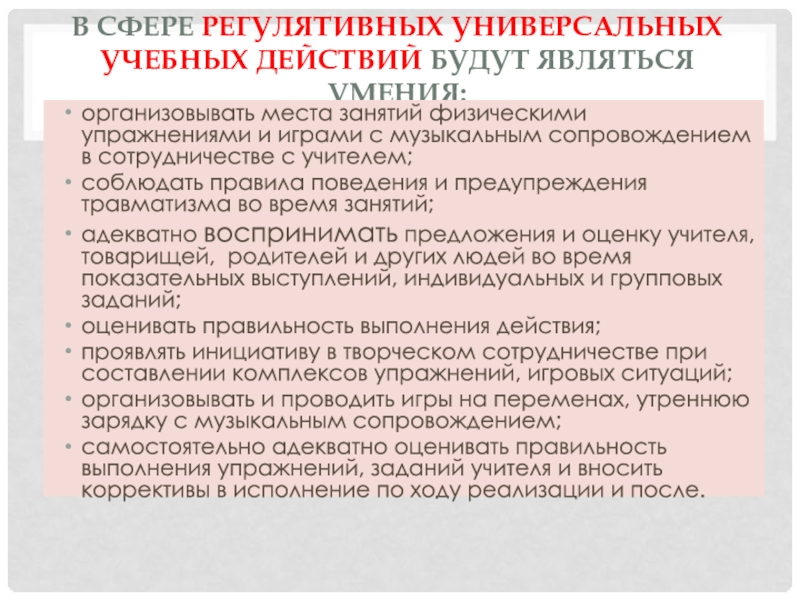 Слайд 7В сфере регулятивных универсальных учебных действий будут являться умения: