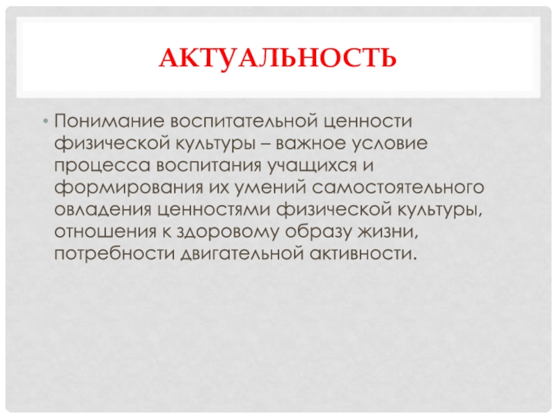 Понимание воспитательной ценности физической культуры – важное условие процесса воспитания учащихся
