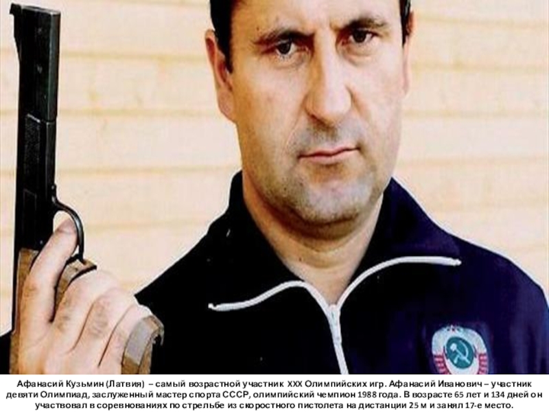 Слайд 7Афанасий Кузьмин (Латвия) – самый возрастной участник XXX Олимпийских игр. Афанасий