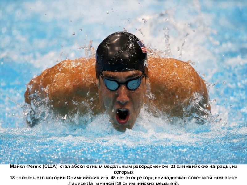 Слайд 2Майкл Фелпс (США) стал абсолютным медальным рекордсменом (22 олимпийские награды, из