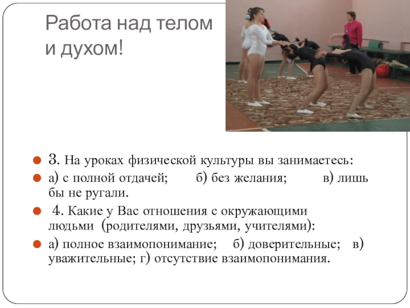 Слайд 19Работа над телом и духом!
