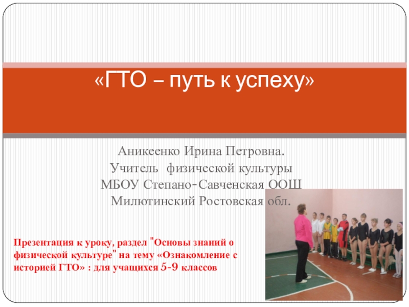 Презентация к уроку, раздел "Основы знаний о физической культуре" на тему «Ознакомление с историей ГТО» : для учащихся 5-9 классов