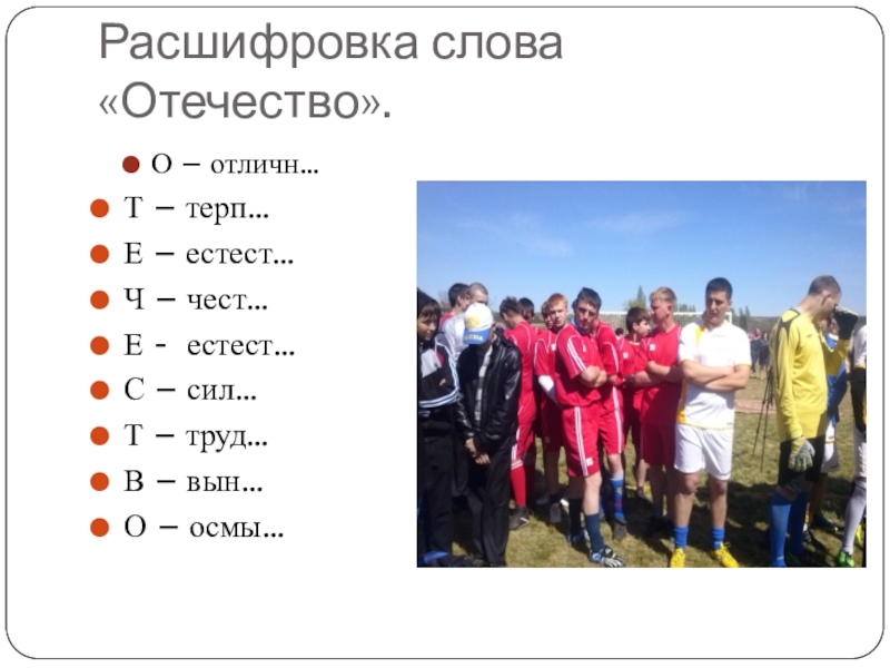 Слайд 7Расшифровка слова «Отечество».