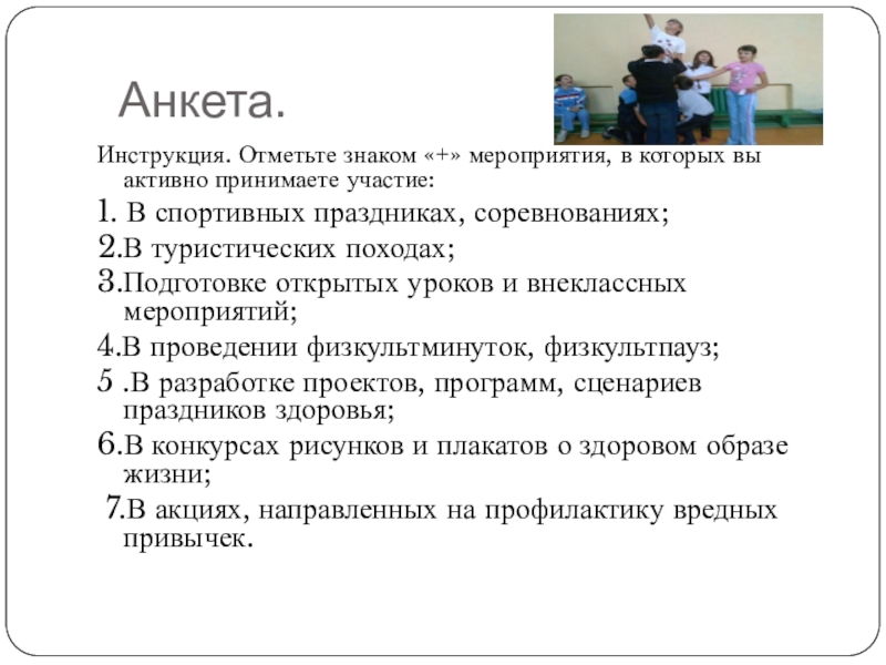 Слайд 15 Анкета.