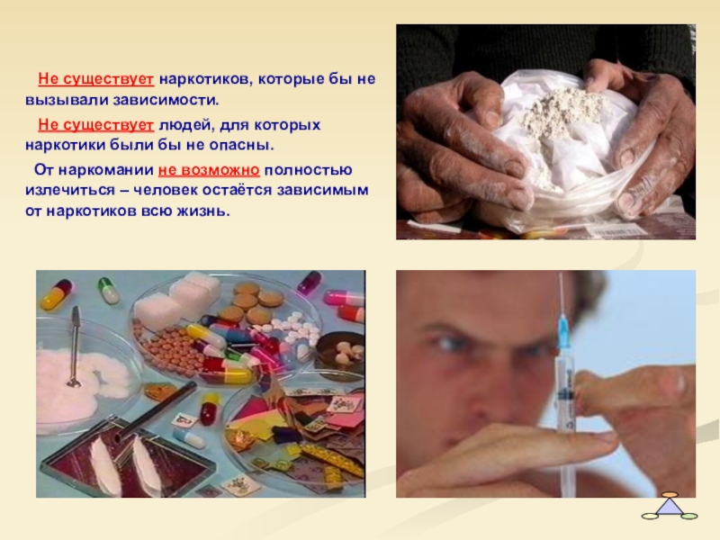 Слайд 18 Не существует наркотиков, которые бы не вызывали зависимости.