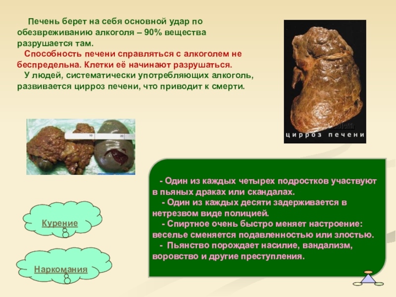 обезвреживанию алкоголя – 90% вещества разрушается там.