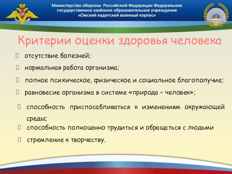 равновесие организма в системе «природа – человек»;