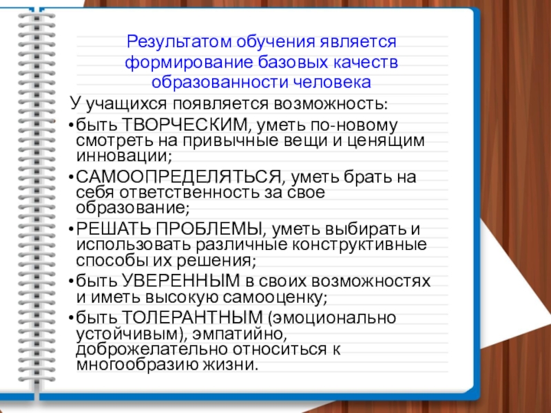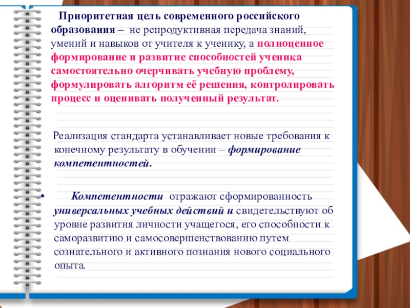 Реализация стандарта устанавливает новые требования к конечному результату в обучении – формирование компетентностей.