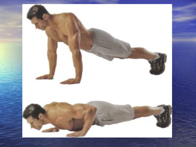 Слайд 4Итак, начинаем. Отжимание в упоре лежа. Это упражнение является одним из