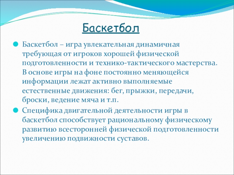 Баскетбол – игра увлекательная динамичная требующая от игроков хорошей физической подготовленности