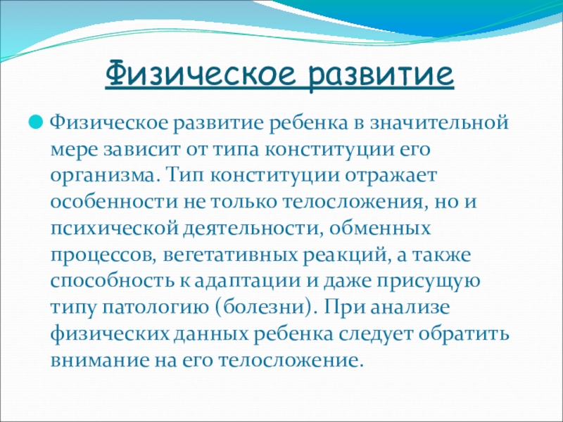 Физическое развитие ребенка в значительной мере зависит от типа конституции