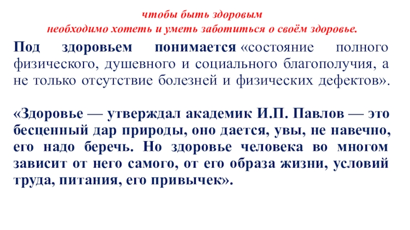 необходимо хотеть и уметь заботиться о своём здоровье.