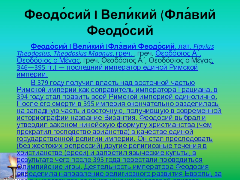 Слайд 31Феодо́сий I Вели́кий (Фла́вий Феодо́сий