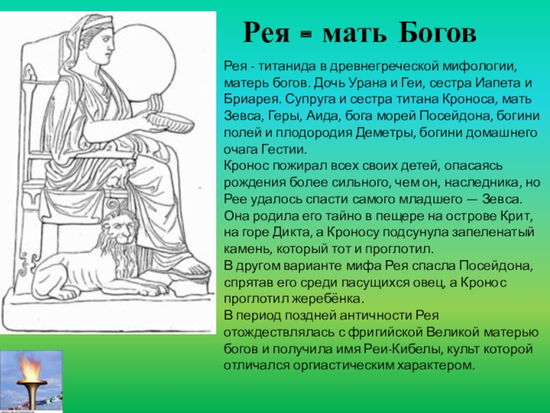 Рея - титанида в древнегреческой мифологии, матерь богов.