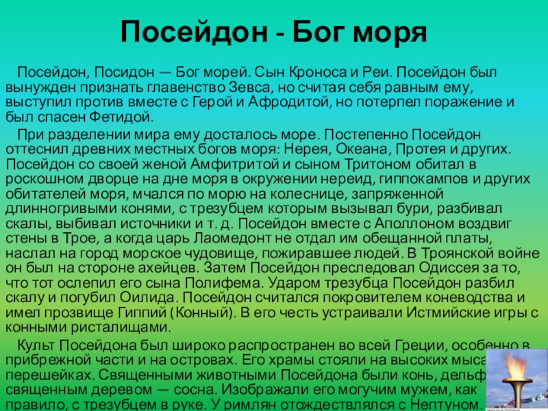 Посейдон, Посидон — Бог морей. Сын Кроноса и