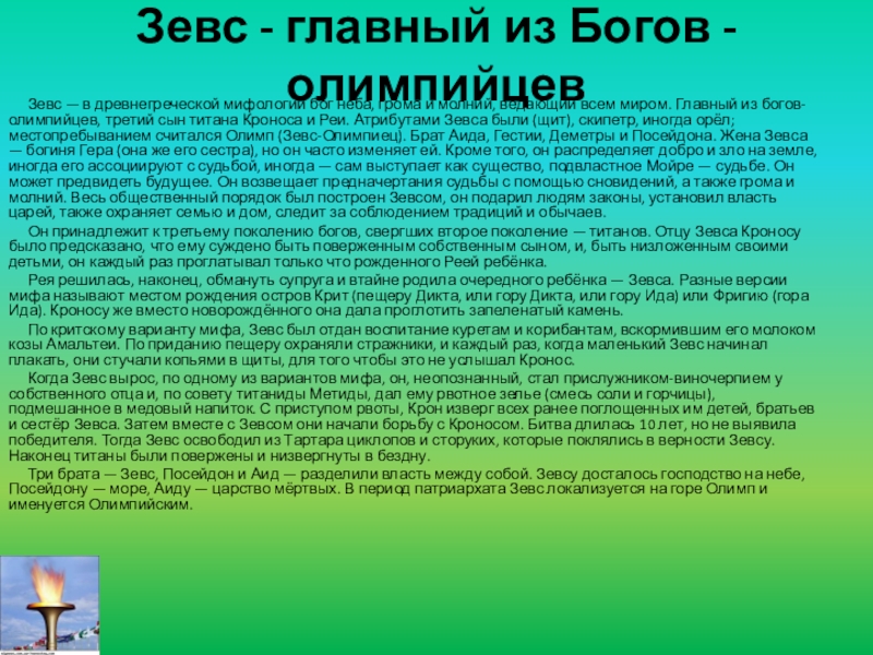 Слайд 5Зевс - главный из Богов - олимпийцев