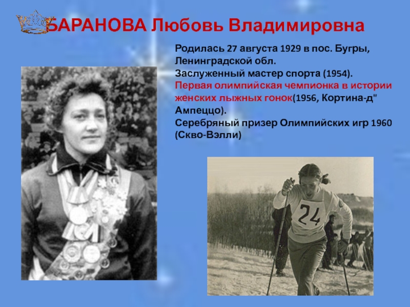 Многократная чемпионка мира в различных видах лыжных гонок. Единственная спортсменка, выигрывавшая медали на пяти Зимних олимпийских играх.