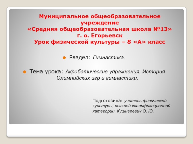 Подготовила: учитель физической культуры, высшей квалификационной категории, Кушнеревич О. Ю.