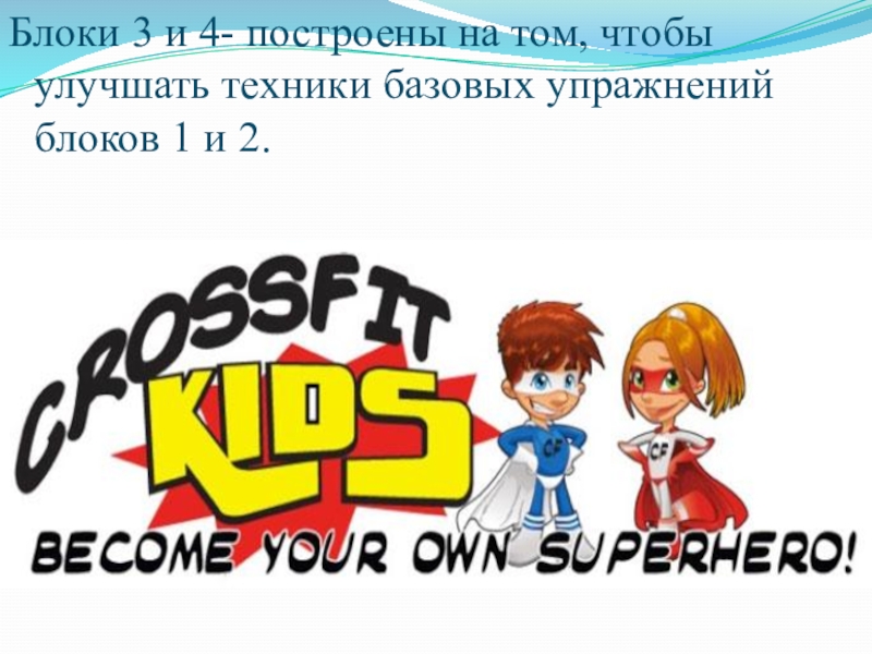 Слайд 16Блоки 3 и 4- построены на том, чтобы улучшать техники базовых