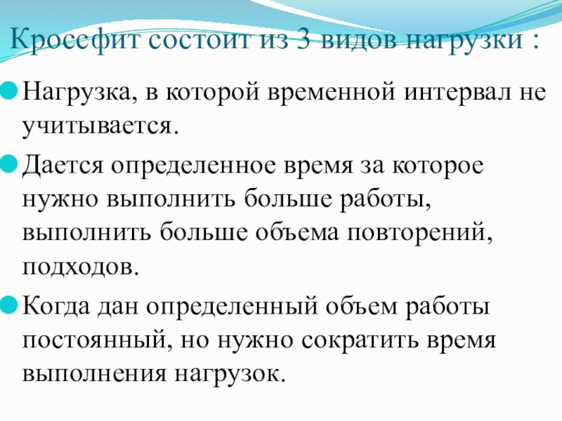 Слайд 13Кроссфит состоит из 3 видов нагрузки :