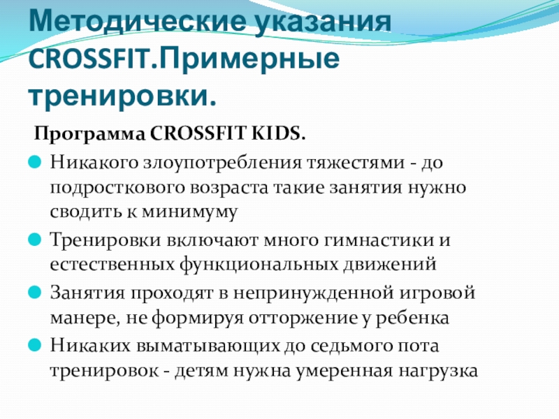 Слайд 9Методические указания CROSSFIT.Примерные тренировки.