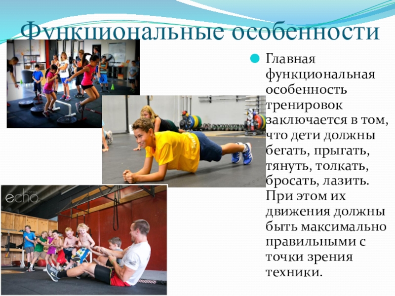 Главная функциональная особенность тренировок заключается в том, что дети должны