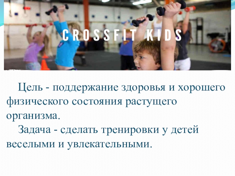 Слайд 7Цель - поддержание здоровья и хорошего физического состояния растущего организма.