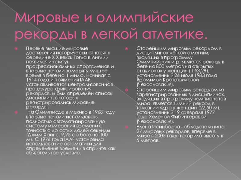 Елена Исинбаева - обладательница 27 мировых рекордов, впервые в мире в 2005 году покорила высоту в 5 метров.