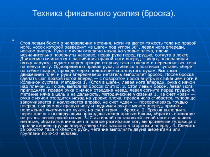 Слайд 12Техника финального усилия (броска).