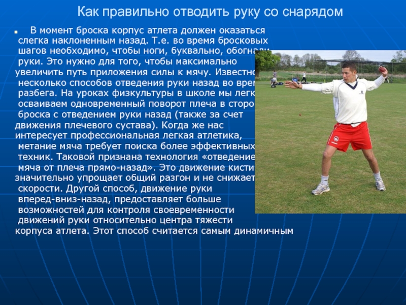 Слайд 9Как правильно отводить руку со снарядом