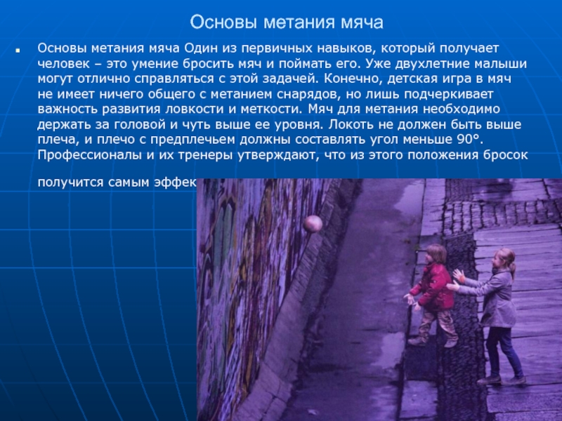 Основы метания мяча Один из первичных навыков, который получает