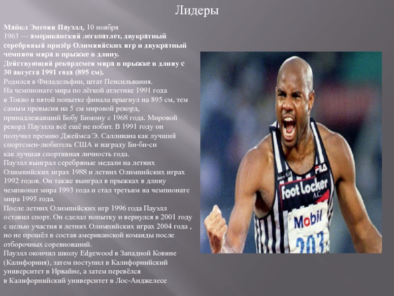 Майкл Энтони Пауэлл, 10 ноября 1963 — американский легкоатлет, двукратный серебряный призёр Олимпийских игр и