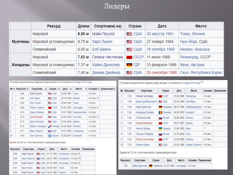 - в прыжках в длину — не менее 10 м и в тройном прыжке — не менее 21 м.
