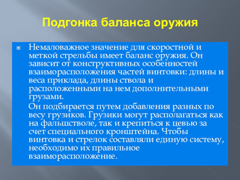 Немаловажное значение для скоростной и меткой стрельбы имеет баланс