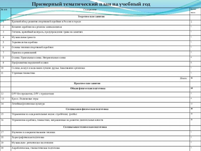 Основное содержание программы- это упражнения на формирование правильной осанки и общеукрепляющие упражнения для опорно-двигательного аппарата, упражнения на развитие системы, зрения и простудных заболеваний.