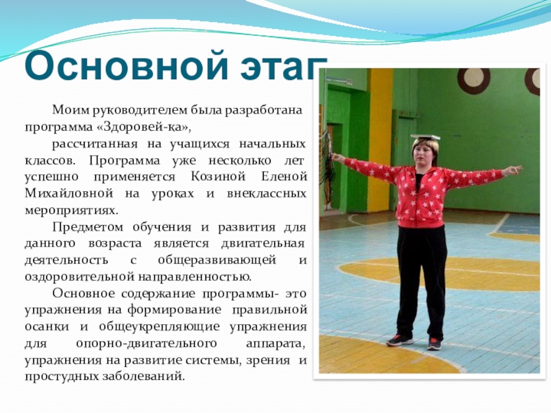 Слайд 15Моим руководителем была разработана программа «Здоровей-ка»,