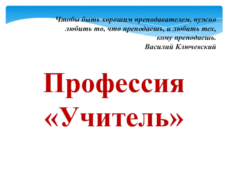 Чтобы быть хорошим преподавателем, нужно любить то, что преподаешь, и любить тех, кому преподаешь.Василий КлючевскийПрофессия «Учитель»