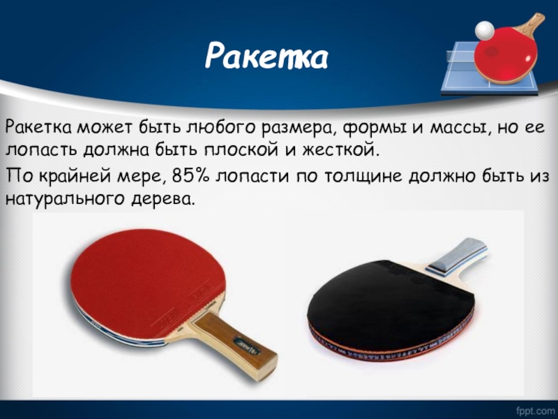 Ракетка может быть любого размера, формы и массы, но ее лопасть
