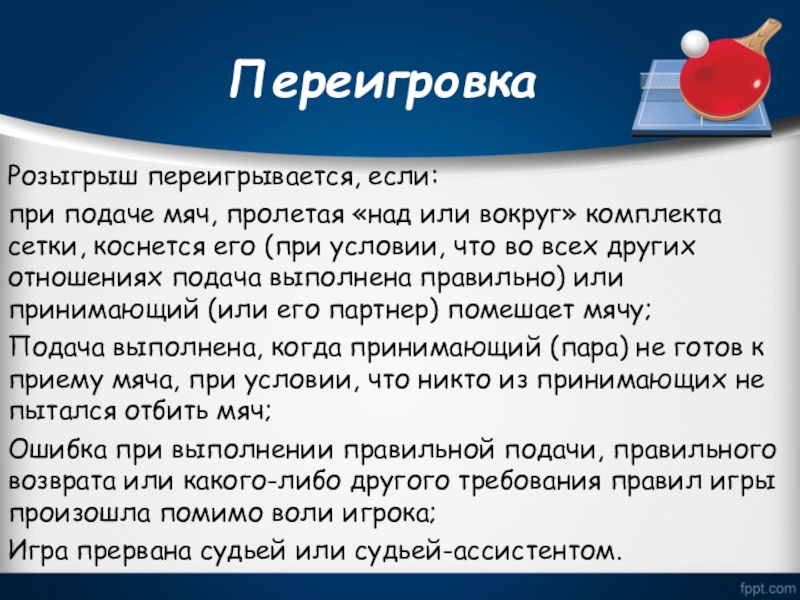 Ошибка при выполнении правильной подачи, правильного возврата или какого-либо другого требования правил игры произошла помимо воли игрока;