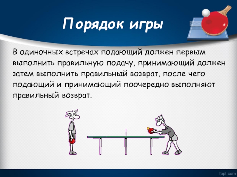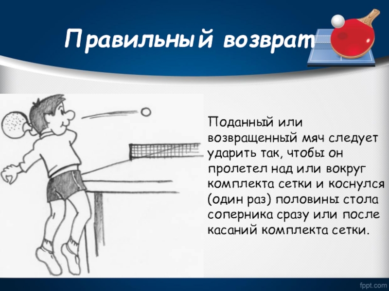 должен затем выполнить правильный возврат, после чего подающий и принимающий поочередно выполняют правильный возврат.