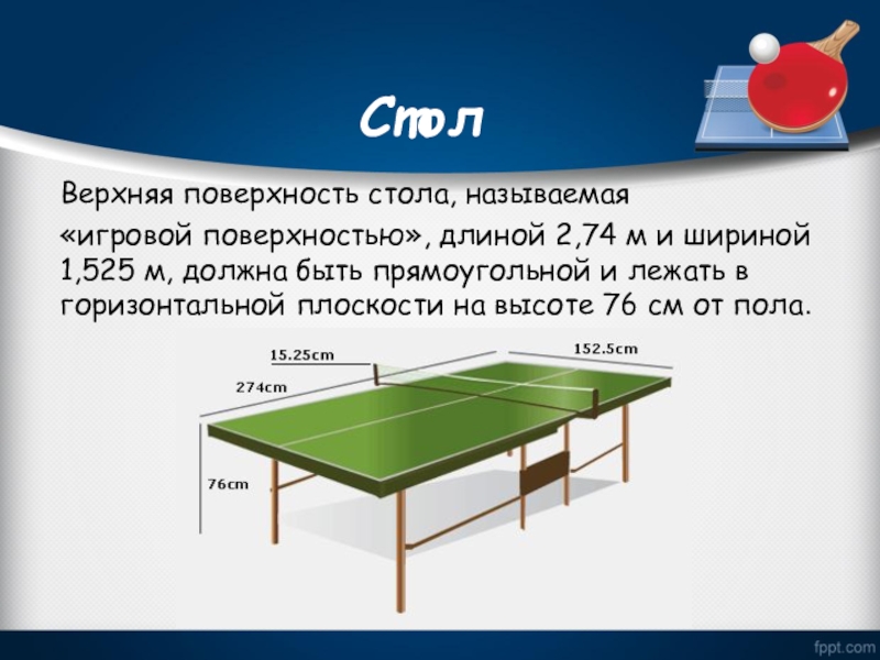 «игровой поверхностью», длиной 2,74 м и шириной 1,525 м,